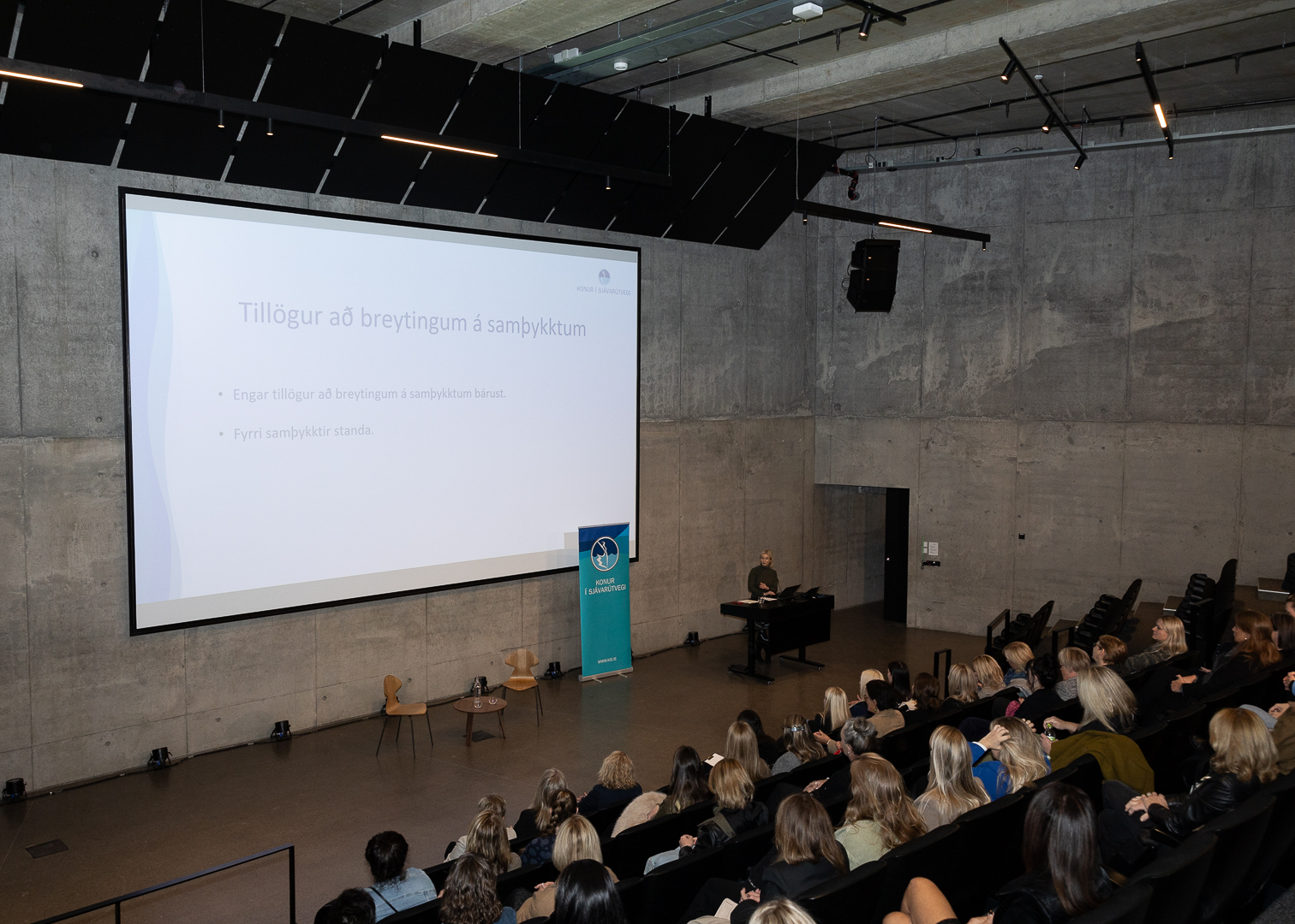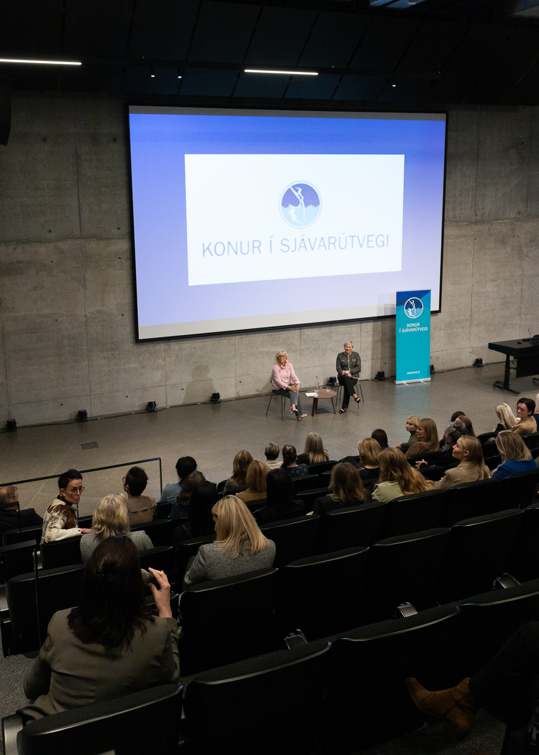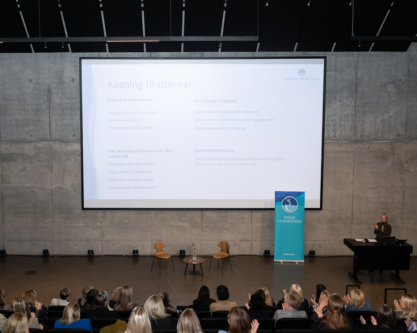 Forseti Íslands, frú Halla Tómasdóttir og Birna Einarsdóttir, stjórnarformaður Iceland Seafood International voru með opið samtal við konur félagsins að loknum hefðbundnum dagskrárliðum aðalfundsins. Þar gáfu þær konum félagsins innsýn inn í þeirra reynsluheim og helstu málefni líðandi stundar voru rædd.